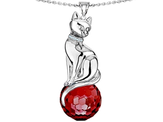 This dazzling Original Star K(tm) Large Cat Pendant with 10mm Simulated Garnet faceted Ball, crafted in 925 Sterling Silver. This attractive design is set with 1 stone prong set red-brown Round Ball Simulated Garnet clean clarity. This style measures 0.60 Inches wide, 2.00 Inches long. Garnet is January Birthstone: From the Latin word 'granatus', the seeds of a pomegranate fruit. A symbol of fidelity, Garnet's powers include healing, strength, protection. Designer: Star K - This beautiful design, is part of the exclusive Star K. jewelry collection. Star K. designs are copyrighted, so please be aware of cheap imitations selling online. Only original Star K. creations are made using the highest quality materials and craftsmanship, backed by an exclusive Lifetime Warranty. Warranty: - This item is covered by Finejewelers exclusive Silver Shield Lifetime Warranty. This exclusive lifetime coverage is offered ONLY by Finejewelers so please shop with confidence, our quality is guaranteed for life!