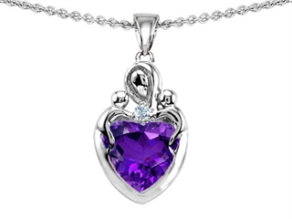 The dazzling Original Star K(tm) Loving Mother with Twins Children Pendant With 8mm Heart Simulated Amethyst, crafted in 925 Sterling Silver. This attractive design is mounted with 1 stone bezel set violet Heart Shape Simulated Amethyst clean clarity, 1 stone bezel set colorless Round Cubic Zirconia clean clarity. This product measures 11.00 mm wide, 22.00 mm long. Amethyst is February Birthstone: From the Greek 'amethystos' meaning 'sober'. A symbol of trust, Amethyst is thought to protect against seduction and provide peace. Free 18 inches chain included Designer: Star K - This beautiful design, is part of the exclusive Star K. jewelry collection. Star K. designs are copyrighted, so please be aware of cheap imitations selling online. Only original Star K. creations are made using the highest quality materials and craftsmanship, backed by an exclusive Lifetime Warranty. Warranty: - This item is covered by Finejewelers exclusive Silver Shield Lifetime Warranty. This exclusive lifetime coverage is offered ONLY by Finejewelers so please shop with confidence, our quality is guaranteed for life!