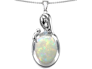 This beautiful Original Star K(tm) Loving Mother With Child Family Pendant With Oval Created Opal, crafted in 925 Sterling Silver. This amazing design is mounted with 1 stone bezel set white iridescent Oval Created Opal, 1 stone bezel set colorless Round Cubic Zirconia. This style measures 12.00 mm wide, 32.00 mm long. Opal is October Birthstone: From the Greek 'opallios', meaning 'colour change'. A symbol of hope and faithfulness, it inspires true love and brings confidence. Free 18 inches chain included Designer: Star K - This beautiful design, is part of the exclusive Star K. jewelry collection. Star K. designs are copyrighted, so please be aware of cheap imitations selling online. Only original Star K. creations are made using the highest quality materials and craftsmanship, backed by an exclusive Lifetime Warranty. Warranty: - This item is covered by Finejewelers exclusive Silver Shield Lifetime Warranty. This exclusive lifetime coverage is offered ONLY by Finejewelers so please shop with confidence, our quality is guaranteed for life!