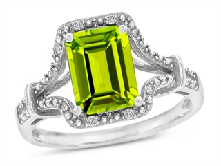 The stunning Tommaso Design(tm) Emerald Cut 8x6 mm Genuine Peridot and Diamond Ring, crafted in 10 kt White Gold. This amazing design is mounted with 1 stone 1.50 carats prong set green-yellow Emerald Cut Peridot, 4 stones 0.02 carats prong set Round Brilliant Diamond K color I3 clarity. This design measures 6.00 mm wide, 10.00 mm long. Peridot is August Birthstone: From the Greek 'Peridona' for 'giving plenty'. A symbol of the sun, Peridot is thought to bring good luck, peace, protection and success. Diamond is April Birthstone: From the Greek 'adamas' meaning 'invincible'. A symbol of enduring love, it is believed to bring the wearer luck and success. Designer: Tommaso design Studio - This classic design, is made by the renowned Tommaso Design Studio. Tommaso creations are copyrighted, so please be aware of cheap imitations selling online. Only original Tommaso designs are made using the highest quality materials and craftsmanship, backed by an exclusive Lifetime Warranty. Warranty: - This item is covered by Finejewelers exclusive Silver Shield Lifetime Warranty. This exclusive lifetime coverage is offered ONLY by Finejewelers so please shop with confidence, our quality is guaranteed for life!