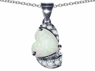 This beautiful Original Star K(tm) Heart Shape 8mm Created Opal Love Pendant, crafted in 925 Sterling Silver. This amazing design is mounted with 1 stone prong set white iridescent Heart Shape Created Opal clean clarity, 6 stones prong set colorless Round Brilliant Cubic Zirconia. This style measures 9.00 mm wide, 18.00 mm long. Opal is October Birthstone: From the Greek 'opallios', meaning 'colour change'. A symbol of hope and faithfulness, it inspires true love and brings confidence. Designer: Star K - This beautiful design, is part of the exclusive Star K. jewelry collection. Star K. designs are copyrighted, so please be aware of cheap imitations selling online. Only original Star K. creations are made using the highest quality materials and craftsmanship, backed by an exclusive Lifetime Warranty. Warranty: - This item is covered by Finejewelers exclusive Silver Shield Lifetime Warranty. This exclusive lifetime coverage is offered ONLY by Finejewelers so please shop with confidence, our quality is guaranteed for life!