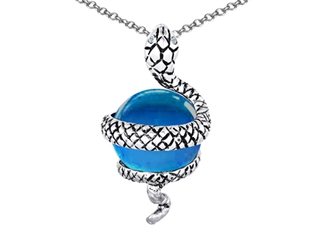 This beautiful Original Star K(tm) Large Snake Pendant with 10mm Simulated Blue Topaz Ball, crafted in 925 Sterling Silver. This attractive design is mounted with 1 stone prong set medium to dark blue Round Ball Simulated Blue Topaz clean clarity. This design measures 0.65 Inches wide, 1.25 Inches long. Blue Topaz is December Birthstone: From the Greek 'topazos' meaning 'to seek'. Topaz is said to enhance spiritual potential, intelligence, creativity and wealth. Designer: Star K - This beautiful design, is part of the exclusive Star K. jewelry collection. Star K. designs are copyrighted, so please be aware of cheap imitations selling online. Only original Star K. creations are made using the highest quality materials and craftsmanship, backed by an exclusive Lifetime Warranty. Warranty: - This item is covered by Finejewelers exclusive Silver Shield Lifetime Warranty. This exclusive lifetime coverage is offered ONLY by Finejewelers so please shop with confidence, our quality is guaranteed for life!