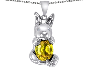 This attractive Original Star K(tm) Love Bunny Pendant With Simulated Citrine Oval 10x8, crafted in .925 Sterling Silver. This beautiful design is mounted with 1 stone prong set medium to light yellow Oval Simulated citrine clean clarity. This product measures 15.00 mm wide, 30.00 mm long. Citrine is November Birthstone: From the French 'citron' for 'lemon'. A symbol of success, is said to protect against sudden death and increase success and prosperity. Free 18 inches chain included Designer: Star K - This beautiful design, is part of the exclusive Star K. jewelry collection. Star K. designs are copyrighted, so please be aware of cheap imitations selling online. Only original Star K. creations are made using the highest quality materials and craftsmanship, backed by an exclusive Lifetime Warranty. Warranty: - This item is covered by Finejewelers exclusive Silver Shield Lifetime Warranty. This exclusive lifetime coverage is offered ONLY by Finejewelers so please shop with confidence, our quality is guaranteed for life!
