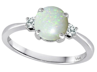 This stunning Tommaso Design(tm) 7mm Round Genuine Opal and Diamond Classic 3 stone Engagement Ring, crafted in 10 kt White Gold. This attractive design is mounted with 1 stone prong set white iridescent Round Opal eye clean to slightly included clarity, 2 stones prong set Round Brilliant Diamond K color I3 clarity. This design measures 7.00 mm wide, 7.00 mm long. Opal is October Birthstone: From the Greek 'opallios', meaning 'colour change'. A symbol of hope and faithfulness, it inspires true love and brings confidence. Diamond is April Birthstone: From the Greek 'adamas' meaning 'invincible'. A symbol of enduring love, it is believed to bring the wearer luck and success. Designer: Tommaso design Studio - This classic design, is made by the renowned Tommaso Design Studio. Tommaso creations are copyrighted, so please be aware of cheap imitations selling online. Only original Tommaso designs are made using the highest quality materials and craftsmanship, backed by an exclusive Lifetime Warranty. Warranty: - This item is covered by Finejewelers exclusive Silver Shield Lifetime Warranty. This exclusive lifetime coverage is offered ONLY by Finejewelers so please shop with confidence, our quality is guaranteed for life!
