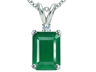 This amazing Tommaso Design(tm) Classic 7x5mm Emerald Cut Genuine Emerald and Diamond Pendant, available in 14 kt White Gold and 14 kt Yellow Gold. This beautiful design is mounted with 1 stone 0.80 carats prong set green Emerald Cut Emerald eye clean clarity, 1 stone 0.02 carats prong set Round Brilliant Diamond K color I3 clarity. This design measures 5.00 mm wide, 15.00 mm long. Emerald is May Birthstone: From the French 'esmeralde' meaning 'green gem'. A symbol of immortality, it is said to improve memory, wisdom and intuition. Diamond is April Birthstone: From the Greek 'adamas' meaning 'invincible'. A symbol of enduring love, it is believed to bring the wearer luck and success. Free 18 inches chain included Designer: Tommaso design Studio - This classic design, is made by the renowned Tommaso Design Studio. Tommaso creations are copyrighted, so please be aware of cheap imitations selling online. Only original Tommaso designs are made using the highest quality materials and craftsmanship, backed by an exclusive Lifetime Warranty. Warranty: - This item is covered by Finejewelers exclusive Silver Shield Lifetime Warranty. This exclusive lifetime coverage is offered ONLY by Finejewelers so please shop with confidence, our quality is guaranteed for life!. Metal Available: 14 kt White Gold, 14 kt Yellow Gold.