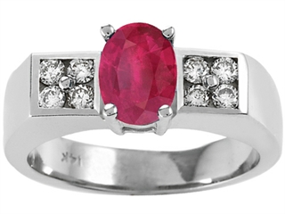 The beautiful Tommaso Design(tm) Genuine Ruby Oval 7x5mm.and Diamond Ring, available in 14 kt White Gold and 14 kt Yellow Gold. This attractive design is set with 1 stone 0.90 carats prong set medium to dark red Oval Ruby eye clean to slightly included clarity, 8 stones 0.25 carats prong set Round Brilliant Diamond other-color color I3 clarity. This design measures 15.00 mm wide. Ruby is July Birthstone: From the Latin 'ruber' meaning 'red'. King of gems and a symbol of royalty, it is said to inspire love, passion, confidence and leadership. Diamond is April Birthstone: From the Greek 'adamas' meaning 'invincible'. A symbol of enduring love, it is believed to bring the wearer luck and success. Made in USA Designer: Tommaso design Studio - This classic design, is made by the renowned Tommaso Design Studio. Tommaso creations are copyrighted, so please be aware of cheap imitations selling online. Only original Tommaso designs are made using the highest quality materials and craftsmanship, backed by an exclusive Lifetime Warranty. Warranty: - This item is covered by Finejewelers exclusive Silver Shield Lifetime Warranty. This exclusive lifetime coverage is offered ONLY by Finejewelers so please shop with confidence, our quality is guaranteed for life!. Metal Available: 14 kt White Gold, 14 kt Yellow Gold.