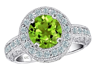 The impressing Original Star K(tm) 7mm Round Simulated Peridot Engagement Ring, crafted in 925 Sterling Silver. This attractive design is set with 1 stone prong set green-yellow Round Simulated Peridot eye clean clarity, 44 stones prong set colorless Round Cubic Zirconia eye clean clarity. This product measures 10.00 mm wide, 10.00 mm long. Peridot is August Birthstone: From the Greek 'Peridona' for 'giving plenty'. A symbol of the sun, Peridot is thought to bring good luck, peace, protection and success. Designer: Star K - This beautiful design, is part of the exclusive Star K. jewelry collection. Star K. designs are copyrighted, so please be aware of cheap imitations selling online. Only original Star K. creations are made using the highest quality materials and craftsmanship, backed by an exclusive Lifetime Warranty. Warranty: - This item is covered by Finejewelers exclusive Silver Shield Lifetime Warranty. This exclusive lifetime coverage is offered ONLY by Finejewelers so please shop with confidence, our quality is guaranteed for life!