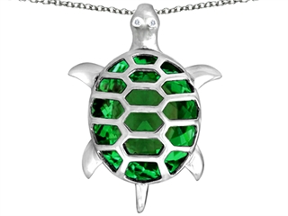 The amazing Original Star K(tm) Good Luck Turtle Pendant with Oval Simulated Emerald, crafted in 925 Sterling Silver. This beautiful design is set with 1 stone bezel set green Oval Simulated Emerald clean clarity, 2 stones bezel set colorless Round Brilliant Cubic Zirconia. This product measures 22.00 mm wide, 38.00 mm long. Emerald is May Birthstone: From the French 'esmeralde' meaning 'green gem'. A symbol of immortality, it is said to improve memory, wisdom and intuition. Free 18 inches Sterling Silver Chain included Designer: Star K - This beautiful design, is part of the exclusive Star K. jewelry collection. Star K. designs are copyrighted, so please be aware of cheap imitations selling online. Only original Star K. creations are made using the highest quality materials and craftsmanship, backed by an exclusive Lifetime Warranty. Warranty: - This item is covered by Finejewelers exclusive Silver Shield Lifetime Warranty. This exclusive lifetime coverage is offered ONLY by Finejewelers so please shop with confidence, our quality is guaranteed for life!