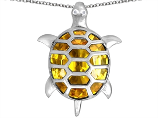 The impressing Original Star K(tm) Good Luck Turtle Pendant with Oval Simulated Citrine, crafted in 925 Sterling Silver. This amazing design is mounted with 1 stone bezel set medium to light yellow Oval Simulated Citrine clean clarity, 2 stones bezel set colorless Round Brilliant Cubic Zirconia. This design measures 22.00 mm wide, 38.00 mm long. Citrine is November Birthstone: From the French 'citron' for 'lemon'. A symbol of success, is said to protect against sudden death and increase success and prosperity. Free 18 inches Sterling Silver Chain included Designer: Star K - This beautiful design, is part of the exclusive Star K. jewelry collection. Star K. designs are copyrighted, so please be aware of cheap imitations selling online. Only original Star K. creations are made using the highest quality materials and craftsmanship, backed by an exclusive Lifetime Warranty. Warranty: - This item is covered by Finejewelers exclusive Silver Shield Lifetime Warranty. This exclusive lifetime coverage is offered ONLY by Finejewelers so please shop with confidence, our quality is guaranteed for life!