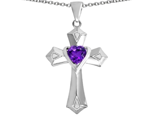 This amazing Original Star K(tm) Heart Cross Love Pendant with Heart Shape Simulated Amethyst, crafted in 925 Sterling Silver. This attractive design is set with 1 stone prong set violet Heart Shape Simulated Amethyst clean clarity. This design measures 21.00 mm wide, 40.00 mm long. Amethyst is February Birthstone: From the Greek 'amethystos' meaning 'sober'. A symbol of trust, Amethyst is thought to protect against seduction and provide peace. Free 18 inches Sterling Silver Chain included Designer: Star K - This beautiful design, is part of the exclusive Star K. jewelry collection. Star K. designs are copyrighted, so please be aware of cheap imitations selling online. Only original Star K. creations are made using the highest quality materials and craftsmanship, backed by an exclusive Lifetime Warranty. Warranty: - This item is covered by Finejewelers exclusive Silver Shield Lifetime Warranty. This exclusive lifetime coverage is offered ONLY by Finejewelers so please shop with confidence, our quality is guaranteed for life!