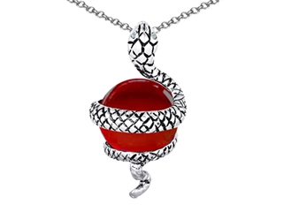 This impressing Original Star K(tm) Large Snake Pendant with 10mm Simulated Ruby Ball, crafted in 925 Sterling Silver. This amazing design is set with 1 stone prong set red Round Ball Simulated Ruby clean clarity. This product measures 0.65 Inches wide, 1.25 Inches long. Ruby is July Birthstone: From the Latin 'ruber' meaning 'red'. King of gems and a symbol of royalty, it is said to inspire love, passion, confidence and leadership. Designer: Star K - This beautiful design, is part of the exclusive Star K. jewelry collection. Star K. designs are copyrighted, so please be aware of cheap imitations selling online. Only original Star K. creations are made using the highest quality materials and craftsmanship, backed by an exclusive Lifetime Warranty. Warranty: - This item is covered by Finejewelers exclusive Silver Shield Lifetime Warranty. This exclusive lifetime coverage is offered ONLY by Finejewelers so please shop with confidence, our quality is guaranteed for life!