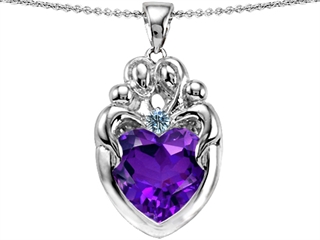 This impressing Original Star K(tm) Large Loving Mother Twins Family Pendant With 12mm Heart Simulated Amethyst, crafted in 925 Sterling Silver. This beautiful design is set with 1 stone bezel set violet Heart Shape Simulated Amethyst clean clarity, 1 stone bezel set colorless Round Cubic Zirconia. This product measures 15.00 mm wide, 28.00 mm long. Amethyst is February Birthstone: From the Greek 'amethystos' meaning 'sober'. A symbol of trust, Amethyst is thought to protect against seduction and provide peace. Free 18 inches chain included Designer: Star K - This beautiful design, is part of the exclusive Star K. jewelry collection. Star K. designs are copyrighted, so please be aware of cheap imitations selling online. Only original Star K. creations are made using the highest quality materials and craftsmanship, backed by an exclusive Lifetime Warranty. Warranty: - This item is covered by Finejewelers exclusive Silver Shield Lifetime Warranty. This exclusive lifetime coverage is offered ONLY by Finejewelers so please shop with confidence, our quality is guaranteed for life!