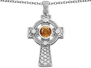 The attractive Celtic Love by Kelly(tm) Celtic Cross pendant with 7mm Round Simulated Imperial Yellow Topaz, crafted in 925 Sterling Silver. This attractive design is mounted with 1 stone prong set brown-yellow Round Simulated Imperial YellowTopaz, 4 stones prong set colorless Round Brilliant Cubic Zirconia. This style measures 19.00 mm wide, 36.00 mm long. Free 18 inches chain included Warranty: - This item is covered by Finejewelers exclusive Silver Shield Lifetime Warranty. This exclusive lifetime coverage is offered ONLY by Finejewelers so please shop with confidence, our quality is guaranteed for life!