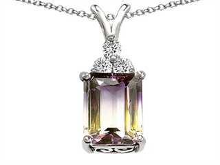 This amazing Original Star K(tm) Genuine Ametrine Pendant, crafted in .925 Sterling Silver. This attractive design is set with 1 stone 6.00 carats prong set light violet and yellow Emerald Cut Ametrine clean clarity, 3 stones 0.15 carats prong set colorless Round Brilliant Cubic Zirconia. This product measures 0.50 Inches high, 0.50 Inches wide. Free 18 inches chain included Designer: Star K - This beautiful design, is part of the exclusive Star K. jewelry collection. Star K. designs are copyrighted, so please be aware of cheap imitations selling online. Only original Star K. creations are made using the highest quality materials and craftsmanship, backed by an exclusive Lifetime Warranty. Warranty: - This item is covered by Finejewelers exclusive Silver Shield Lifetime Warranty. This exclusive lifetime coverage is offered ONLY by Finejewelers so please shop with confidence, our quality is guaranteed for life!