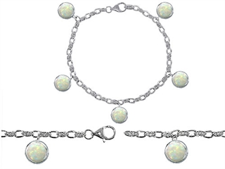 The dazzling Original Star K(tm) High End Tennis Charm Bracelet With 5pcs 7mm Round Created Opal, crafted in 925 Sterling Silver. This beautiful design is set with 5 stones bezel set white iridescent Round Created Opal, 79 stones prong set colorless Round Cubic Zirconia. This style measures 0.25 Inches wide, 7.50 Inches long. Opal is October Birthstone: From the Greek 'opallios', meaning 'colour change'. A symbol of hope and faithfulness, it inspires true love and brings confidence. Designer: Star K - This beautiful design, is part of the exclusive Star K. jewelry collection. Star K. designs are copyrighted, so please be aware of cheap imitations selling online. Only original Star K. creations are made using the highest quality materials and craftsmanship, backed by an exclusive Lifetime Warranty. Warranty: - This item is covered by Finejewelers exclusive Silver Shield Lifetime Warranty. This exclusive lifetime coverage is offered ONLY by Finejewelers so please shop with confidence, our quality is guaranteed for life!