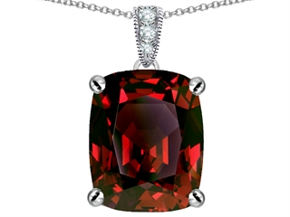 This beautiful Original Star K(tm) Large 12x10mm Cushion Cut Simulated Garnet Pendant, crafted in 925 Sterling Silver. This beautiful design is mounted with 1 stone prong set red-brown Cushion Cut Simulated Garnet, 3 stones prong set colorless Round Brilliant Cubic Zirconia. This style measures 11.00 mm wide, 21.00 mm long. Garnet is January Birthstone: From the Latin word 'granatus', the seeds of a pomegranate fruit. A symbol of fidelity, Garnet's powers include healing, strength, protection. Free 18 inches chain included Designer: Star K - This beautiful design, is part of the exclusive Star K. jewelry collection. Star K. designs are copyrighted, so please be aware of cheap imitations selling online. Only original Star K. creations are made using the highest quality materials and craftsmanship, backed by an exclusive Lifetime Warranty. Warranty: - This item is covered by Finejewelers exclusive Silver Shield Lifetime Warranty. This exclusive lifetime coverage is offered ONLY by Finejewelers so please shop with confidence, our quality is guaranteed for life!