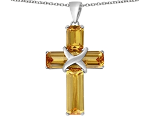 The alluring Original Star K(tm) Large Christian Cross Pendant with Emerald Cut Simulated Imperial Yellow Topaz Stones, crafted in 925 Sterling Silver. This attractive design is set with 1 stone prong set brown-yellow Emerald Cut Simulated Imperial YellowTopaz clean clarity, 1 stone prong set brown-yellow Emerald Cut Simulated Imperial YellowTopaz clean clarity, 1 stone prong set brown-yellow Emerald Cut Simulated Imperial YellowTopaz clean clarity. This product measures 20.00 mm wide, 38.00 mm long. Free 18 inches Sterling Silver Chain included Designer: Star K - This beautiful design, is part of the exclusive Star K. jewelry collection. Star K. designs are copyrighted, so please be aware of cheap imitations selling online. Only original Star K. creations are made using the highest quality materials and craftsmanship, backed by an exclusive Lifetime Warranty. Warranty: - This item is covered by Finejewelers exclusive Silver Shield Lifetime Warranty. This exclusive lifetime coverage is offered ONLY by Finejewelers so please shop with confidence, our quality is guaranteed for life!