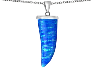 The alluring Original Star K(tm) Large Wolf Fang Tooth Pendant with Created Blue Opal, crafted in 925 Sterling Silver. This attractive design is set with 1 stone bar set blue green iridescent Special Cut Created Blue Opal clean clarity. This product measures 13.00 mm wide, 39.00 mm long. Free 18 inches Sterling Silver Chain included Designer: Star K - This beautiful design, is part of the exclusive Star K. jewelry collection. Star K. designs are copyrighted, so please be aware of cheap imitations selling online. Only original Star K. creations are made using the highest quality materials and craftsmanship, backed by an exclusive Lifetime Warranty. Warranty: - This item is covered by Finejewelers exclusive Silver Shield Lifetime Warranty. This exclusive lifetime coverage is offered ONLY by Finejewelers so please shop with confidence, our quality is guaranteed for life!