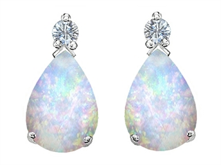 The stunning Original Star K(tm) Pear Shape 8x6 mm Created Opal Earring Studs, crafted in 925 Sterling Silver. This attractive design is set with 2 stones prong set white iridescent Pear Shape Created Opal, 2 stones prong set colorless Round Cubic Zirconia. This style measures 6.00 mm wide, 11.00 mm long. Opal is October Birthstone: From the Greek 'opallios', meaning 'colour change'. A symbol of hope and faithfulness, it inspires true love and brings confidence. Designer: Star K - This beautiful design, is part of the exclusive Star K. jewelry collection. Star K. designs are copyrighted, so please be aware of cheap imitations selling online. Only original Star K. creations are made using the highest quality materials and craftsmanship, backed by an exclusive Lifetime Warranty. Warranty: - This item is covered by Finejewelers exclusive Silver Shield Lifetime Warranty. This exclusive lifetime coverage is offered ONLY by Finejewelers so please shop with confidence, our quality is guaranteed for life!
