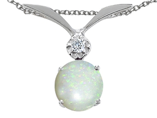 The impressive Tommaso Design(tm) Round 7mm Genuine Opal And Genuine Diamond Pendant, crafted in 14 kt White Gold. This attractive design is set with 1 stone prong set white iridescent Round Opal, 1 stone prong set Round Brilliant Diamond K color I3 clarity. This design measures 14.00 mm wide, 17.00 mm long. Opal is October Birthstone: From the Greek 'opallios', meaning 'colour change'. A symbol of hope and faithfulness, it inspires true love and brings confidence. Diamond is April Birthstone: From the Greek 'adamas' meaning 'invincible'. A symbol of enduring love, it is believed to bring the wearer luck and success. Free 18 inches chain included Designer: Tommaso design Studio - This classic design, is made by the renowned Tommaso Design Studio. Tommaso creations are copyrighted, so please be aware of cheap imitations selling online. Only original Tommaso designs are made using the highest quality materials and craftsmanship, backed by an exclusive Lifetime Warranty. Warranty: - This item is covered by Finejewelers exclusive Silver Shield Lifetime Warranty. This exclusive lifetime coverage is offered ONLY by Finejewelers so please shop with confidence, our quality is guaranteed for life!