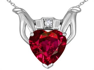 This impressing Celtic Love by Kelly(tm) Claddagh Love Pendant With 8mm Heart Created Ruby and Genuine Diamond, crafted in 14 kt White Gold. This amazing design is mounted with 1 stone prong set red Heart Shape Created Ruby eye clean clarity, 1 stone prong set Round Brilliant Diamond K color I3 clarity. This style measures 13.00 mm wide, 15.00 mm long. Ruby is July Birthstone: From the Latin 'ruber' meaning 'red'. King of gems and a symbol of royalty, it is said to inspire love, passion, confidence and leadership. Diamond is April Birthstone: From the Greek 'adamas' meaning 'invincible'. A symbol of enduring love, it is believed to bring the wearer luck and success. Free 18 inches chain included Warranty: - This item is covered by Finejewelers exclusive Silver Shield Lifetime Warranty. This exclusive lifetime coverage is offered ONLY by Finejewelers so please shop with confidence, our quality is guaranteed for life!