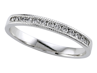 The stunning Karina B(tm) Round Diamond Band With Milgrain, available in a range of metals including 18 kt Yellow Gold, 18 kt White Gold and Platinum 950. This amazing design is mounted with 13 stones 0.20 carats channel set Round Brilliant Diamond G color VS2 clarity. This design measures 2.40 mm wide. Diamond is April Birthstone: From the Greek 'adamas' meaning 'invincible'. A symbol of enduring love, it is believed to bring the wearer luck and success. Made in USA Designer: Karina B - Classic style, elegant design and perfect craftsmanship. This is the inspiration behind Karina B. Each design we create is produced with the latest technological advancements in computers and machinery. Every piece of jewelry manufactured is done from scratch according to the exact specifications of the design and stone sizes. Each precious stone is set with the guidance of a master stone setter, using the equipment that was not available in the past, to precise measurements of a hundredth of a millimeter. Combining our manufacturing techniques with high quality diamonds and precious stones along with Platinum or 18 KT gold gives you, the educated consumer, an exceptional masterpiece. If you are lucky enough to own a piece by Karina B., wear it with the confidence and pride of knowing that there is nothing made better. Warranty: - This item is covered by Finejewelers exclusive Silver Shield Lifetime Warranty. This exclusive lifetime coverage is offered ONLY by Finejewelers so please shop with confidence, our quality is guaranteed for life!. Metal Available: 18 kt Yellow Gold, 18 kt White Gold, Platinum 950.