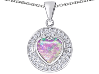 The impressing Original Star K (tm) Circle Of Love Pendant with 10mm Heart Shape Created Pink Opal, crafted in 925 Sterling Silver. This beautiful design is mounted with 1 stone bezel set pink iridesent Heart Shape Created Pink Opal clean clarity, 36 stones prong set colorless Round Brilliant Cubic Zirconia clean clarity. This design measures 17.50 mm wide, 24.00 mm long. Opal is October Birthstone: From the Greek 'opallios', meaning 'colour change'. A symbol of hope and faithfulness, it inspires true love and brings confidence. Free 18 inches Sterling Silver Chain included Designer: Star K - This beautiful design, is part of the exclusive Star K. jewelry collection. Star K. designs are copyrighted, so please be aware of cheap imitations selling online. Only original Star K. creations are made using the highest quality materials and craftsmanship, backed by an exclusive Lifetime Warranty. Warranty: - This item is covered by Finejewelers exclusive Silver Shield Lifetime Warranty. This exclusive lifetime coverage is offered ONLY by Finejewelers so please shop with confidence, our quality is guaranteed for life!