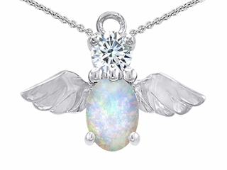 Original Star K(tm) Angel Of Love Protection Pendant With Oval 8x6mm Created Opal