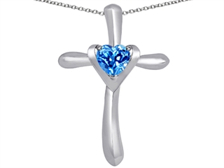 This beautiful Original Star K(tm) Cross Love Pendant with 6mm Heart Shape Simulated Blue Topaz, crafted in 925 Sterling Silver. This attractive design is mounted with 1 stone prong set medium to dark blue Heart Shape Simulated Blue Topaz clean clarity. This style measures 21.00 mm wide, 32.00 mm long. Blue Topaz is December Birthstone: From the Greek 'topazos' meaning 'to seek'. Topaz is said to enhance spiritual potential, intelligence, creativity and wealth. Free 18 inches Sterling Silver Chain included Designer: Star K - This beautiful design, is part of the exclusive Star K. jewelry collection. Star K. designs are copyrighted, so please be aware of cheap imitations selling online. Only original Star K. creations are made using the highest quality materials and craftsmanship, backed by an exclusive Lifetime Warranty. Warranty: - This item is covered by Finejewelers exclusive Silver Shield Lifetime Warranty. This exclusive lifetime coverage is offered ONLY by Finejewelers so please shop with confidence, our quality is guaranteed for life!