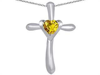 The impressing Original Star K(tm) Cross Love Pendant with 6mm Heart Shape Simulated Citrine, crafted in 925 Sterling Silver. This beautiful design is set with 1 stone prong set medium to light yellow Heart Shape Simulated Citrine clean clarity. This style measures 21.00 mm wide, 32.00 mm long. Citrine is November Birthstone: From the French 'citron' for 'lemon'. A symbol of success, is said to protect against sudden death and increase success and prosperity. Free 18 inches Sterling Silver Chain included Designer: Star K - This beautiful design, is part of the exclusive Star K. jewelry collection. Star K. designs are copyrighted, so please be aware of cheap imitations selling online. Only original Star K. creations are made using the highest quality materials and craftsmanship, backed by an exclusive Lifetime Warranty. Warranty: - This item is covered by Finejewelers exclusive Silver Shield Lifetime Warranty. This exclusive lifetime coverage is offered ONLY by Finejewelers so please shop with confidence, our quality is guaranteed for life!