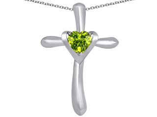 The beautiful Original Star K(tm) Cross Love Pendant with 6mm Heart Shape Simulated Peridot, crafted in 925 Sterling Silver. This amazing design is set with 1 stone prong set green-yellow Heart Shape Simulated Peridot clean clarity. This product measures 21.00 mm wide, 32.00 mm long. Peridot is August Birthstone: From the Greek 'Peridona' for 'giving plenty'. A symbol of the sun, Peridot is thought to bring good luck, peace, protection and success. Free 18 inches Sterling Silver Chain included Designer: Star K - This beautiful design, is part of the exclusive Star K. jewelry collection. Star K. designs are copyrighted, so please be aware of cheap imitations selling online. Only original Star K. creations are made using the highest quality materials and craftsmanship, backed by an exclusive Lifetime Warranty. Warranty: - This item is covered by Finejewelers exclusive Silver Shield Lifetime Warranty. This exclusive lifetime coverage is offered ONLY by Finejewelers so please shop with confidence, our quality is guaranteed for life!