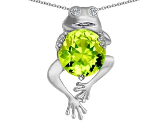 This stunning Original Star K(tm) Good Luck Frog Holding Round 10mm Simulated Apple Green Amethyst Pendant, crafted in 925 Sterling Silver. This attractive design is mounted with 1 stone prong set light green-yellow Round Simulated Green Amethyst clean clarity, 2 stones bezel set colorless Round Brilliant Cubic Zirconia. This design measures 14.00 mm wide, 23.00 mm long. Amethyst is February Birthstone: From the Greek 'amethystos' meaning 'sober'. A symbol of trust, Amethyst is thought to protect against seduction and provide peace. Free 18 inches Sterling Silver Chain included Designer: Star K - This beautiful design, is part of the exclusive Star K. jewelry collection. Star K. designs are copyrighted, so please be aware of cheap imitations selling online. Only original Star K. creations are made using the highest quality materials and craftsmanship, backed by an exclusive Lifetime Warranty. Warranty: - This item is covered by Finejewelers exclusive Silver Shield Lifetime Warranty. This exclusive lifetime coverage is offered ONLY by Finejewelers so please shop with confidence, our quality is guaranteed for life!