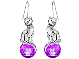 This impressing Original Star K(tm) Large Cat Hanging Hook Earrings with 10mm Simulated Amethyst Ball, crafted in 925 Sterling Silver. This attractive design is mounted with 2 stones prong set violet Round Ball Simulated Amethyst clean clarity. This style measures 0.40 Inches wide, 1.50 Inches long. Amethyst is February Birthstone: From the Greek 'amethystos' meaning 'sober'. A symbol of trust, Amethyst is thought to protect against seduction and provide peace. Free 18 inches matching chain included. Designer: Star K - This beautiful design, is part of the exclusive Star K. jewelry collection. Star K. designs are copyrighted, so please be aware of cheap imitations selling online. Only original Star K. creations are made using the highest quality materials and craftsmanship, backed by an exclusive Lifetime Warranty. Warranty: - This item is covered by Finejewelers exclusive Silver Shield Lifetime Warranty. This exclusive lifetime coverage is offered ONLY by Finejewelers so please shop with confidence, our quality is guaranteed for life!
