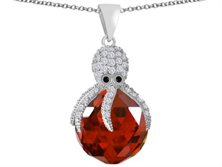 This attractive Original Star K(tm) Large Octopus Pendant with 15mm Faceted Simulated Ruby Ball, crafted in 925 Sterling Silver. This beautiful design is set with 1 stone prong set red Round Ball Simulated Ruby clean clarity, 65 stones prong set colorless Round Brilliant Cubic Zirconia. This design measures 18.00 mm wide, 38.00 mm long. Ruby is July Birthstone: From the Latin 'ruber' meaning 'red'. King of gems and a symbol of royalty, it is said to inspire love, passion, confidence and leadership. Free 18 inches Sterling Silver Chain included Designer: Star K - This beautiful design, is part of the exclusive Star K. jewelry collection. Star K. designs are copyrighted, so please be aware of cheap imitations selling online. Only original Star K. creations are made using the highest quality materials and craftsmanship, backed by an exclusive Lifetime Warranty. Warranty: - This item is covered by Finejewelers exclusive Silver Shield Lifetime Warranty. This exclusive lifetime coverage is offered ONLY by Finejewelers so please shop with confidence, our quality is guaranteed for life!