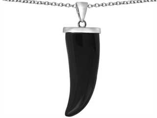The attractive Original Star K(tm) Large Wolf Fang Tooth Pendant with Simulated Black Onyx, crafted in 925 Sterling Silver. This beautiful design is set with 1 stone bar set black Special Cut Simulated Black Onyx clean clarity. This design measures 13.00 mm wide, 39.00 mm long. Free 18 inches Sterling Silver Chain included Designer: Star K - This beautiful design, is part of the exclusive Star K. jewelry collection. Star K. designs are copyrighted, so please be aware of cheap imitations selling online. Only original Star K. creations are made using the highest quality materials and craftsmanship, backed by an exclusive Lifetime Warranty. Warranty: - This item is covered by Finejewelers exclusive Silver Shield Lifetime Warranty. This exclusive lifetime coverage is offered ONLY by Finejewelers so please shop with confidence, our quality is guaranteed for life!