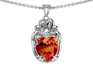 This amazing Original Star K(tm) Loving Mother And Twins Family Pendant With Heart Shape Simulated Orange Mexican Fire Opal, crafted in 925 Sterling Silver. This attractive design is set with 1 stone bezel set red - orange Heart Shape Simulated Fire Opal clean clarity, 1 stone bezel set colorless Round Cubic Zirconia. This design measures 11.00 mm wide, 21.00 mm long. Free 18 inches chain included Designer: Star K - This beautiful design, is part of the exclusive Star K. jewelry collection. Star K. designs are copyrighted, so please be aware of cheap imitations selling online. Only original Star K. creations are made using the highest quality materials and craftsmanship, backed by an exclusive Lifetime Warranty. Warranty: - This item is covered by Finejewelers exclusive Silver Shield Lifetime Warranty. This exclusive lifetime coverage is offered ONLY by Finejewelers so please shop with confidence, our quality is guaranteed for life!