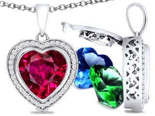 This alluring Switch-It Gems(tm) Heart Shape 10mm Simulated Ruby Pendant with 12 Interchangeable Simulated Birthstones, crafted in 925 Sterling Silver. This amazing design is set with 32 stones channel set colorless Round Brilliant Cubic Zirconia. This design measures 15.00 mm wide, 23.00 mm long. Ruby is July Birthstone: From the Latin 'ruber' meaning 'red'. King of gems and a symbol of royalty, it is said to inspire love, passion, confidence and leadership. Free 18 inches chain included 12 Round 12mm Simulated Birthstone Included Switch-It Gem(tm) Designs are protected by US Copyright and Patent Laws Warranty: - This item is covered by Finejewelers exclusive Silver Shield Lifetime Warranty. This exclusive lifetime coverage is offered ONLY by Finejewelers so please shop with confidence, our quality is guaranteed for life!