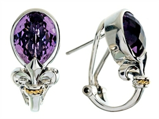 The amazing Balissima By Effy Collection Sterling Silver and 18k Yellow Gold Fleur de Lis Amethyst Earrings, crafted in 925 Silver and 18k Yellow Gold. This amazing design is mounted with 2 stones 4.40 carats bezel set violet Oval Amethyst clean clarity Amethyst is February Birthstone: From the Greek 'amethystos' meaning 'sober'. A symbol of trust, Amethyst is thought to protect against seduction and provide peace. Warranty: - This item is covered by Finejewelers exclusive Silver Shield Lifetime Warranty. This exclusive lifetime coverage is offered ONLY by Finejewelers so please shop with confidence, our quality is guaranteed for life!