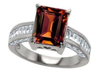 This impressing Original Star K(tm) 10x8mm Emerald Cut Simulated Garnet Engagement Ring, crafted in 925 Sterling Silver. This beautiful design is mounted with 1 stone prong set red-brown Emerald Cut Simulated Garnet clean clarity, 16 stones prong set colorless Octagon Cubic Zirconia, 16 stones prong set colorless Round Cubic Zirconia. This design measures 8.00 mm wide, 10.00 mm long. Garnet is January Birthstone: From the Latin word 'granatus', the seeds of a pomegranate fruit. A symbol of fidelity, Garnet's powers include healing, strength, protection. Designer: Star K - This beautiful design, is part of the exclusive Star K. jewelry collection. Star K. designs are copyrighted, so please be aware of cheap imitations selling online. Only original Star K. creations are made using the highest quality materials and craftsmanship, backed by an exclusive Lifetime Warranty. Warranty: - This item is covered by Finejewelers exclusive Silver Shield Lifetime Warranty. This exclusive lifetime coverage is offered ONLY by Finejewelers so please shop with confidence, our quality is guaranteed for life!