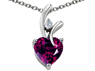 The beautiful Original Star K(tm) Genuine Heart Shaped 8mm Rhodolite Pendant, crafted in .925 Sterling Silver. This beautiful design is set with 1 stone prong set violet - red Heart Shape Rhodolite, 1 stone prong set colorless Round Cubic Zirconia. This style measures 8.00 mm wide, 18.00 mm long. Free 18 inches chain included Designer: Star K - This beautiful design, is part of the exclusive Star K. jewelry collection. Star K. designs are copyrighted, so please be aware of cheap imitations selling online. Only original Star K. creations are made using the highest quality materials and craftsmanship, backed by an exclusive Lifetime Warranty. Warranty: - This item is covered by Finejewelers exclusive Silver Shield Lifetime Warranty. This exclusive lifetime coverage is offered ONLY by Finejewelers so please shop with confidence, our quality is guaranteed for life!