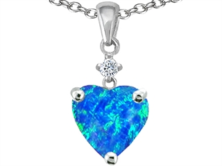 The impressive Original Star K(tm) Heart Shape 8mm Created Blue Opal Pendant, crafted in .925 Sterling Silver. This attractive design is set with 1 stone prong set blue green iridescent Heart Shape Created Blue Opal, 1 stone prong set colorless Round Cubic Zirconia. This design measures 8.00 mm wide, 15.00 mm long. Free 18 inches chain included Designer: Star K - This beautiful design, is part of the exclusive Star K. jewelry collection. Star K. designs are copyrighted, so please be aware of cheap imitations selling online. Only original Star K. creations are made using the highest quality materials and craftsmanship, backed by an exclusive Lifetime Warranty. Warranty: - This item is covered by Finejewelers exclusive Silver Shield Lifetime Warranty. This exclusive lifetime coverage is offered ONLY by Finejewelers so please shop with confidence, our quality is guaranteed for life!