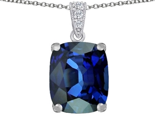 This impressing Original Star K(tm) Large 12x10mm Cushion Cut Created Dark Blue Sapphire Pendant, crafted in .925 Sterling Silver. This beautiful design is set with 1 stone prong set blue Cushion Cut Created Sapphire, 3 stones prong set colorless Round Brilliant Cubic Zirconia. This style measures 11.00 mm wide, 21.00 mm long. Sapphire is September Birthstone: From the Latin 'sapphirus' meaning 'blue'. A symbol for truth and sincerity, it inspires spiritual enlightenment, health and inner peace. Free 18 inches chain included Designer: Star K - This beautiful design, is part of the exclusive Star K. jewelry collection. Star K. designs are copyrighted, so please be aware of cheap imitations selling online. Only original Star K. creations are made using the highest quality materials and craftsmanship, backed by an exclusive Lifetime Warranty. Warranty: - This item is covered by Finejewelers exclusive Silver Shield Lifetime Warranty. This exclusive lifetime coverage is offered ONLY by Finejewelers so please shop with confidence, our quality is guaranteed for life!
