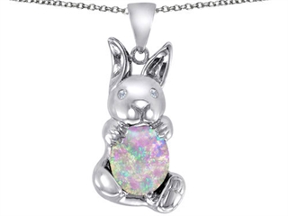 This impressing Original Star K(tm) Love Bunny Pendant With Created Pink Opal Oval 10x8mm, crafted in 925 Sterling Silver. This beautiful design is mounted with 1 stone prong set pink iridesent Oval Created Pink Opal clean clarity. This design measures 13.00 mm wide, 30.00 mm long. Opal is October Birthstone: From the Greek 'opallios', meaning 'colour change'. A symbol of hope and faithfulness, it inspires true love and brings confidence. Free 18 inches chain included Designer: Star K - This beautiful design, is part of the exclusive Star K. jewelry collection. Star K. designs are copyrighted, so please be aware of cheap imitations selling online. Only original Star K. creations are made using the highest quality materials and craftsmanship, backed by an exclusive Lifetime Warranty. Warranty: - This item is covered by Finejewelers exclusive Silver Shield Lifetime Warranty. This exclusive lifetime coverage is offered ONLY by Finejewelers so please shop with confidence, our quality is guaranteed for life!
